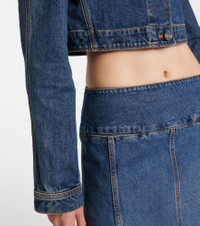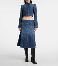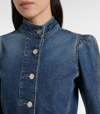Honoring Azzedine Alaia’s legacy, the maison’s sculptural yet wearable collections hold an artful balance that only the most skilled designers can achieve. This denim jacket is a cropped piece with a fitted silhouette and mock neckline. Product Details - Material: 99% cotton, 1% polyurethane - Care instructions: specialist clean - Made in Italy - Designer color name: Bleu Delave - Item color: blue - Dye: medium - Closure: buttoned front - Cuff: buttoned - Item number: P01084932 Size & Fit - True to size - Straight fit - Non-stretchy fabric - Cropped - Height of model is 178cm-70" and wears a size FR 34