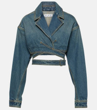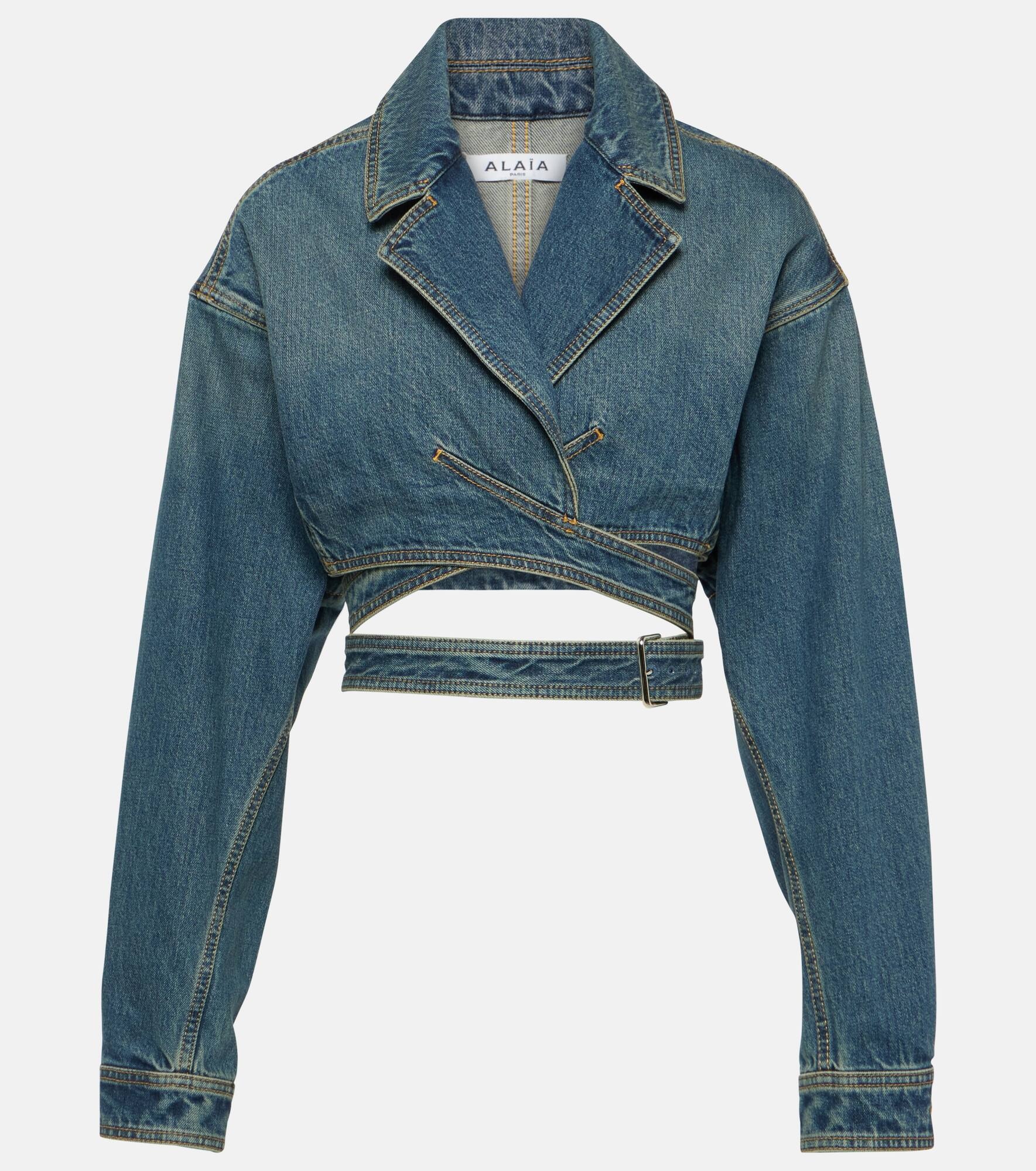 Cropped denim wrap jacket