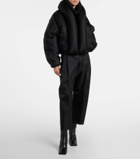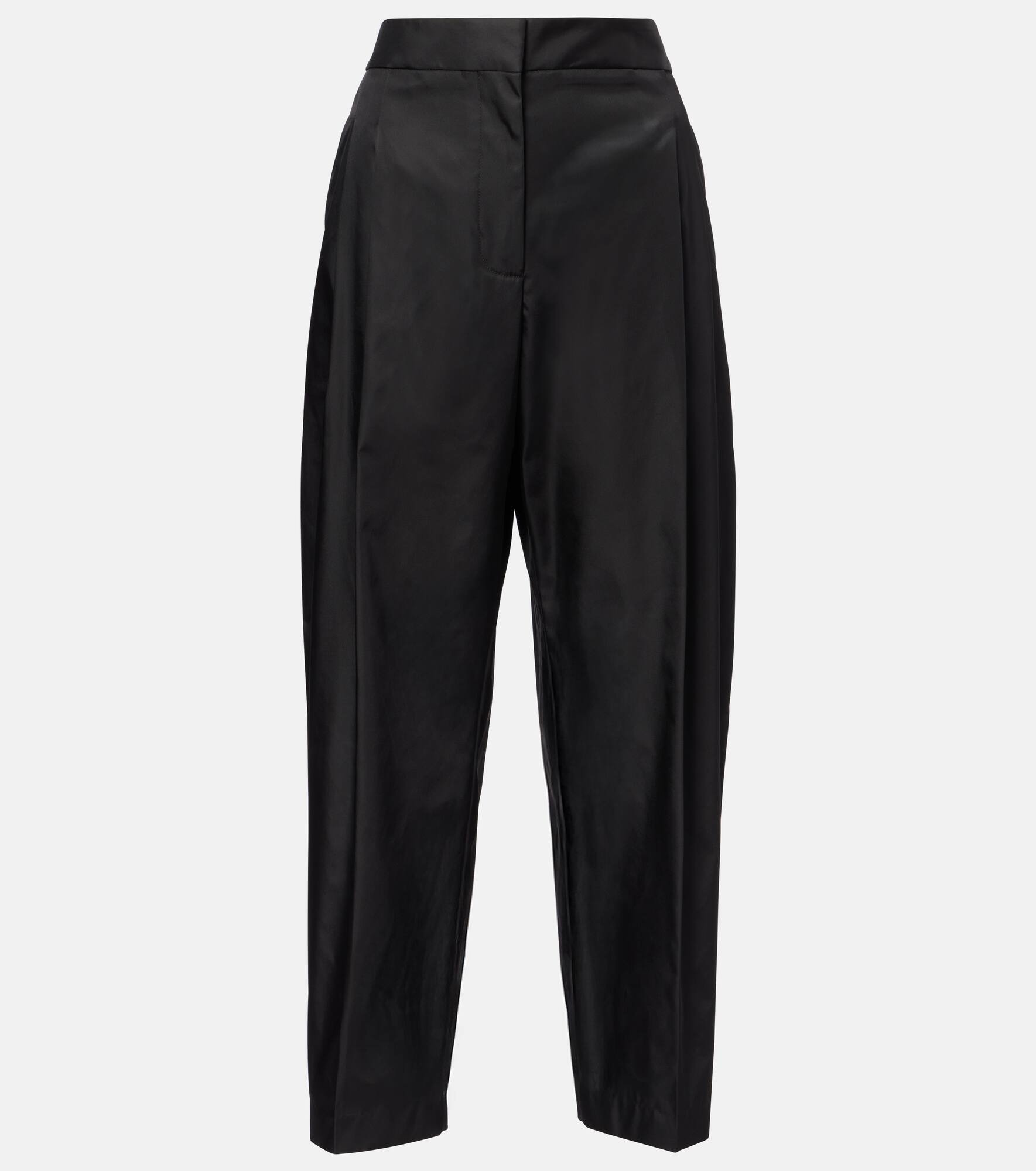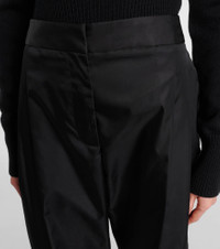 Honoring Azzedine Alaia’s legacy, the maison’s sculptural yet wearable collections hold an artful balance that only the most skilled designers can achieve. Made from black satin, these pants are a tapered pair with a high-rise waistline with adjustable tabs for your preferred fit. Product Details - Material: 96% polyamide, 4% polyurethane - Care instructions: dry clean - Made in Italy - Designer color name: Noir Alaia - Item color: black - Lining: 100% cotton - Closure: zipper fly, button and hook fastenings - Pockets: side slit pockets, back pockets - Adjustable tabs at the waist - Item number: P01085233 Size & Fit - Fits large to size - we recommend trying one size smaller - Adjustable at the waist - Non-stretchy fabric - Tapered leg - High-waisted - Height of model is 178cm-70" and wears a size FR 34