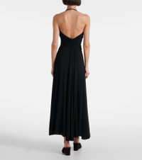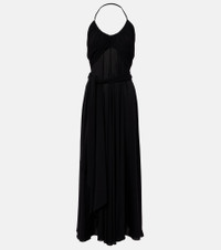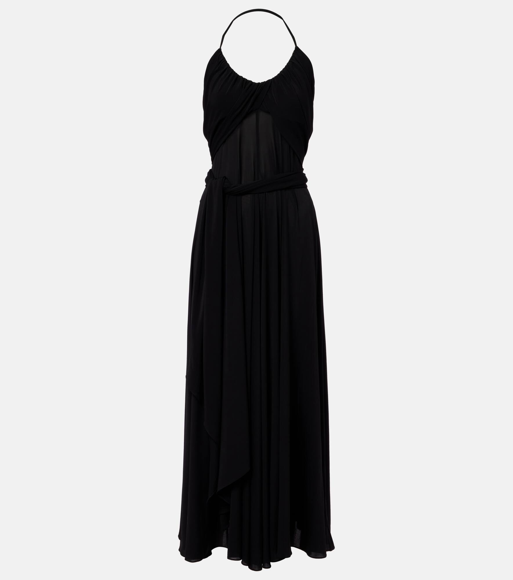 Honoring Azzedine Alaia’s legacy, the Cross maxi dress holds an artful balance between a sculptural yet wearable piece. The gathered neckline and waist sash that drapes to the floor lend a graceful touch to this flattering silhouette. Product Details - Material: 96% viscose, 4% elastane - Care instructions: dry clean - Made in Italy - Designer color name: Noir Alaia - Item color: black - Item number: P01047500 Size & Fit - True to size - Low back - Fitted bodice, loose skirt - Stretchy fabric - The model seen in the picture is 178cm-5'10" and wearing a size FR 36