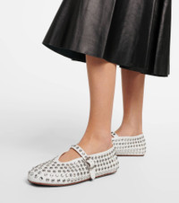 Crystal-embellished leather ballet flats