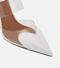Aptly named for the heart-shaped appliqués at the razor-sharp profiles, the Cœur pumps from Alaïa are an elegant pair. Set on stiletto heels, they’re made from glossy patent leather and transparent PU paneling and straps. Product Details - Trim: leather - Sole: leather insole and sole - Lining: polyvinyl chloride - Toe shape: pointed toe - Upper: polyvinyl chloride - Comes with dust bags - Comes with a box - Made in Italy - Item number: P00809306 Size & Fit - Fits slightly small to size - we recommend trying a half size larger - European sizes - 10cm-4" heel (size EU 38)