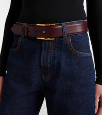 Upholding the legacy of Azzedine Alaia, the maison’s collections achieve an artful balance between sculptural and wearable. The Curve leather belt is adorned with a gold-tone buckle for a dazzling touch. Product Details - Material: leather - Lining: leather - Made in Italy - Color: burgundy - Designer color name: Rouge Grenat - Item color: burgundy - Hardware color: gold - Includes: box, dust bag - Item number: P01115363 Size & Fit - Width 3,5cm-1.5" - Buckle width 5cm-2"