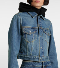 DENIM JACKET WITH KNITTED HOOD