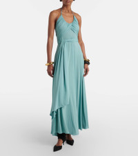 Draped halterneck jersey maxi dress