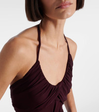 Product Details - Material: 96% viscose, 4% elastane - Care instructions: dry clean - Made in Italy - Designer color name: Bordeaux - Item color: burgundy - Fully lined - Item number: P01047499 Size & Fit - True to size - Low back - Fitted bodice, loose skirt - Stretchy fabric - The model seen in the picture is 178cm-5'10" and wearing a size FR 36
