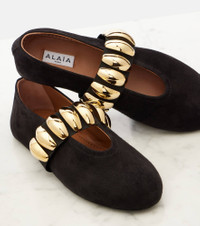 Embellished suede ballet flats