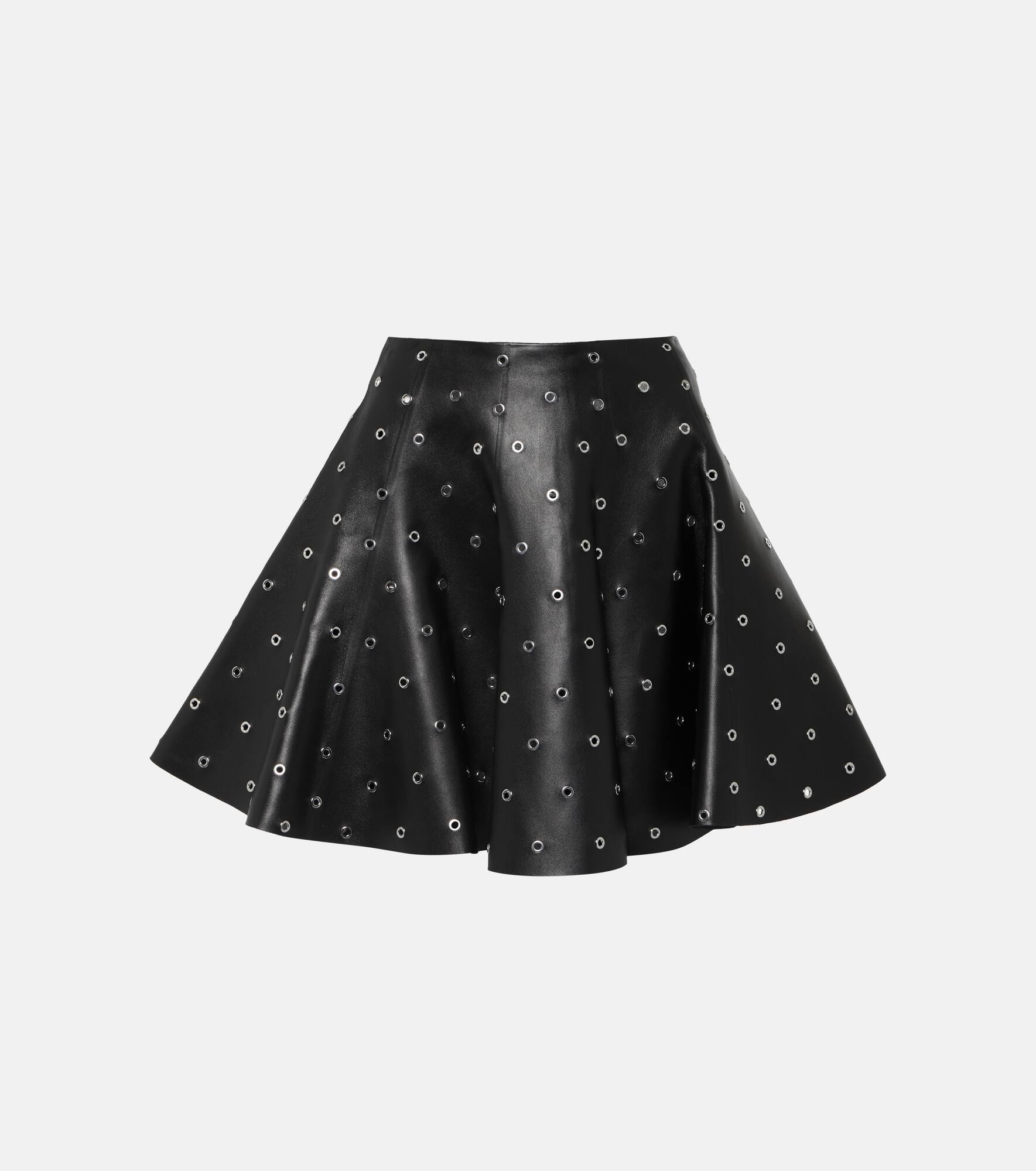 Eyelet embellished leather miniskirt