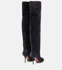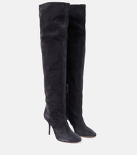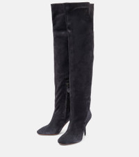The Fluide boots showcase Alaïa’s architecturally informed approach to footwear design. Made from tactile calfskin suede, this style has elongated shafts and 90 mm heels. Product Details - Lining: leather - Closure: zipped fastening - Toe shape: round toe - Upper: calf leather - Sole: leather insole, leather and rubber sole - Designer color name: Carbone - Comes with dust bags - Comes with a box - Made in Italy - Item number: P00771127 Size & Fit - True to size - European sizes - 9,5cm-3.5" heel (size EU 38) - 55cm-21.5" shaft height (size EU 38) - 41,5cm-16.5" shaft width (size EU 38)
