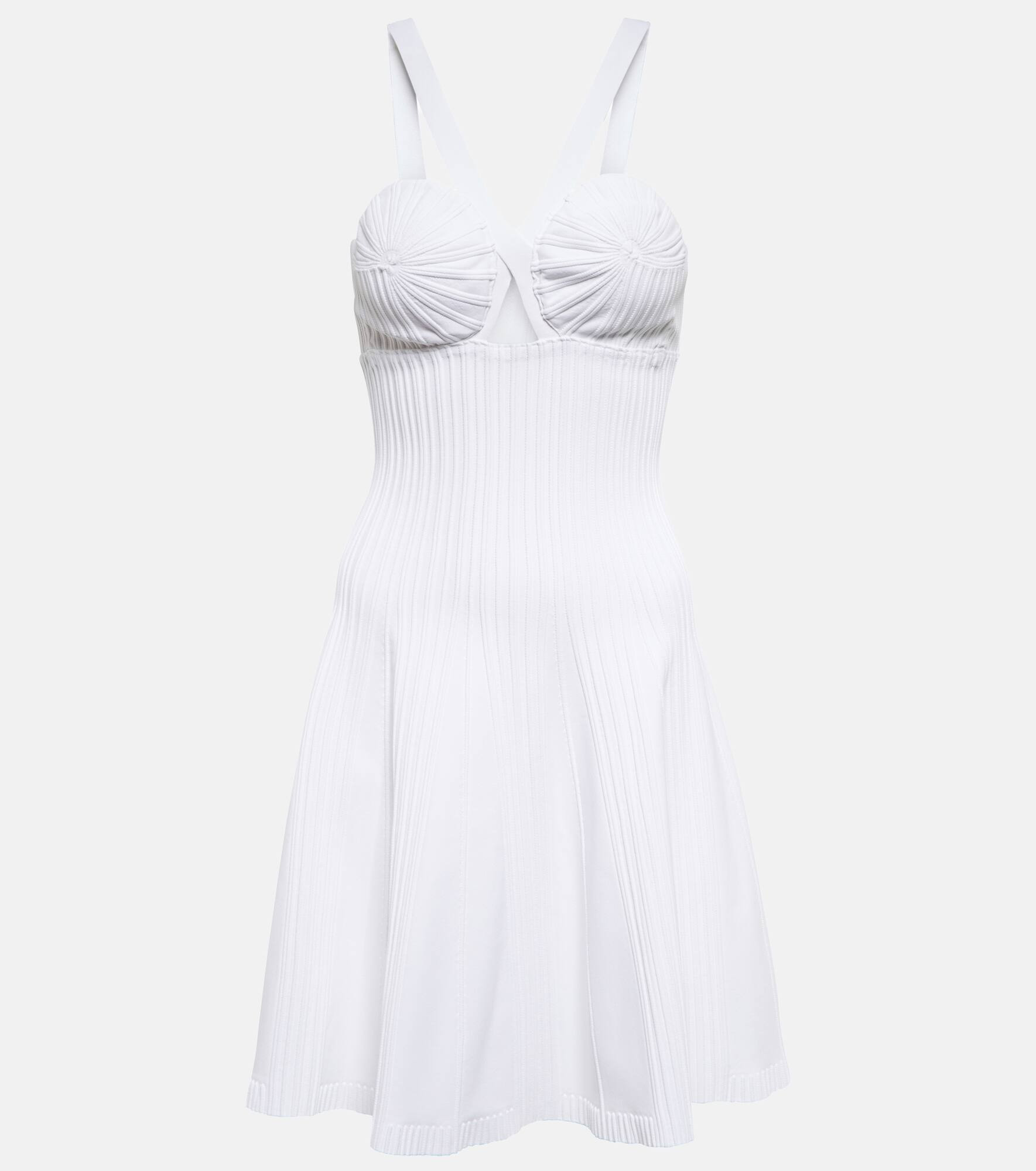 This minidress from Alaïa is perfect for your next daytime event. It has a tightly-knit construction with and A-line silhouette and it's defined by a spiral detail at the bust. - material: 83% viscose, 17% polyester - care instructions: dry clean - zipped back - Made in Italy - Designer colour name: Blanc size & fit - True to size - Cinched waist - Mid-weight material - The model seen in the picture is 178cm-5'10" and wearing a size FR 36