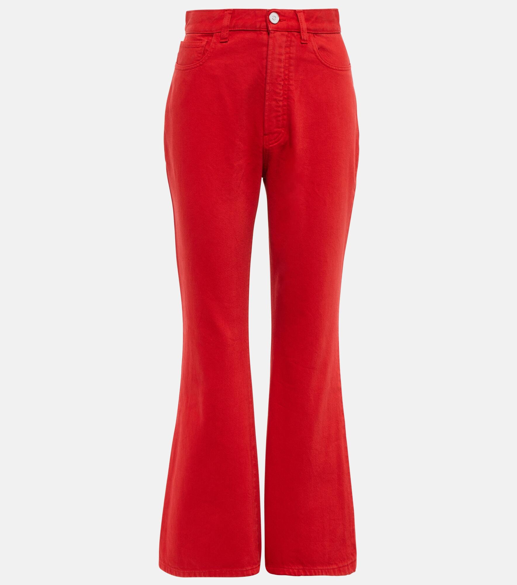 These bootcut jeans from Alaïa are the perfect blend between casual and chic. They're made in Italy from red cotton denim and are shaped with a high-rise waist and flared legs. Product Details - Pockets: five pockets - Made in Italy - Care instructions: machine wash at 30 degrees - Designer color name: Rouge Alaia - Closure: zipper fly, button fastening - Material: 100% cotton - Item number: P00752735 Size & Fit - Fits small to size - we recommend trying one size larger - Close fit at the waist - Mid-weight material - Non-stretchy fabric - Slim-leg with a flared hem - High-waisted - The model seen in the picture is 178cm-5'10" and wearing a size FR 38