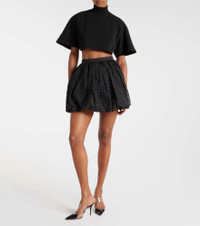 High-rise cotton-blend miniskirt