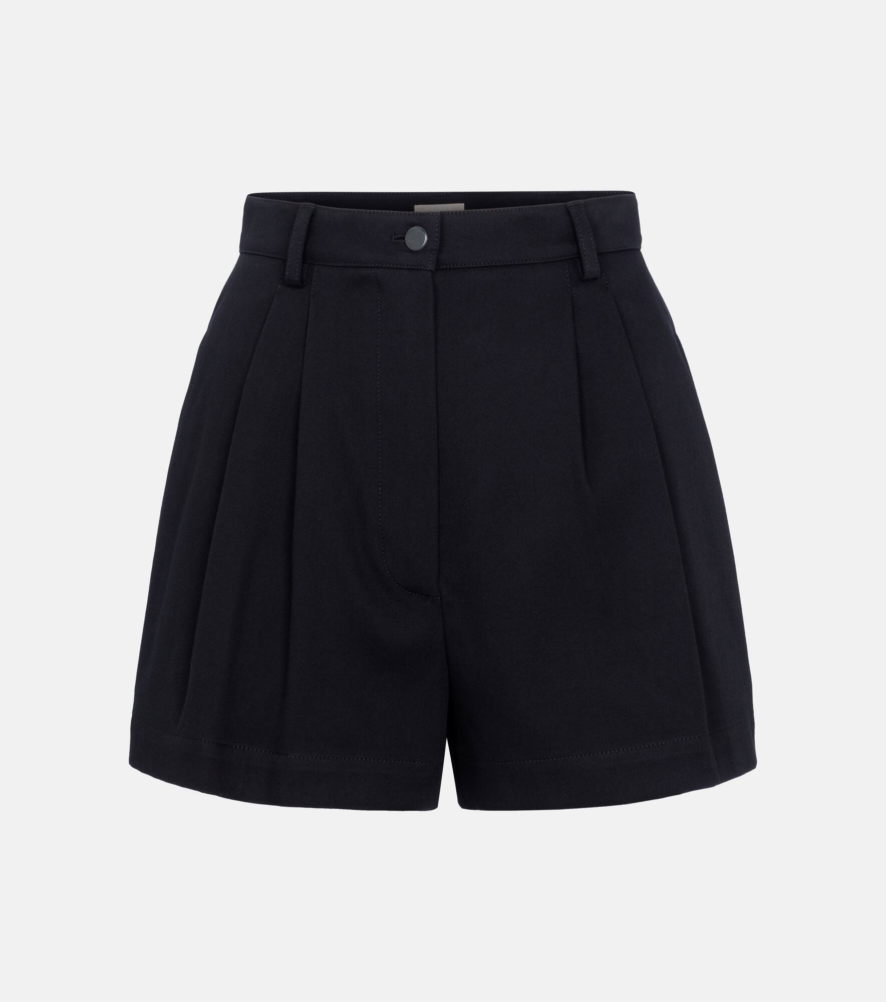 Keep your warm-weather wardrobe stocked with foundation pieces like these high-rise shorts from Alaïa. Made from sturdy cotton gabardine that lends a touch of structure, pleats extending from the waistband further their tailored look and feel. We'd like to see this all-black pair teamed with one the maison's animal-print Mina totes. - material: 100% cotton - lining: 100% cotton, partially lined - care instructions: dry clean - side slit pockets, back pockets - zipper fly, button fastening - Made in Italy - belt loops - Designer colour name: Noir - Runs small, please see Size & Fit tab