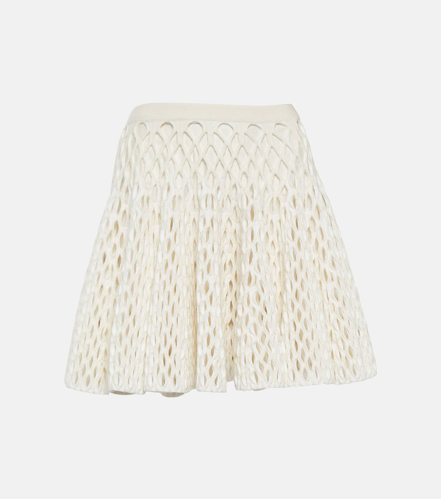 Alaïa's miniskirt highlights the maison's signature fit-and-flare silhouette. Designed to sit high on the waist, this piece has a perforated design. Product Details - Material: 18% polyester, 10% polyamide, 29% wool, 42% viscose, 1% elastane - Care instructions: dry clean - Made in Italy - Designer color name: Ivoire - Item number: P00846588 Size & Fit - Fits small to size - we recommend trying one size larger - Elasticated waist - Heavy material - The model seen in the picture is 178cm-5'10" and wearing a size FR 38