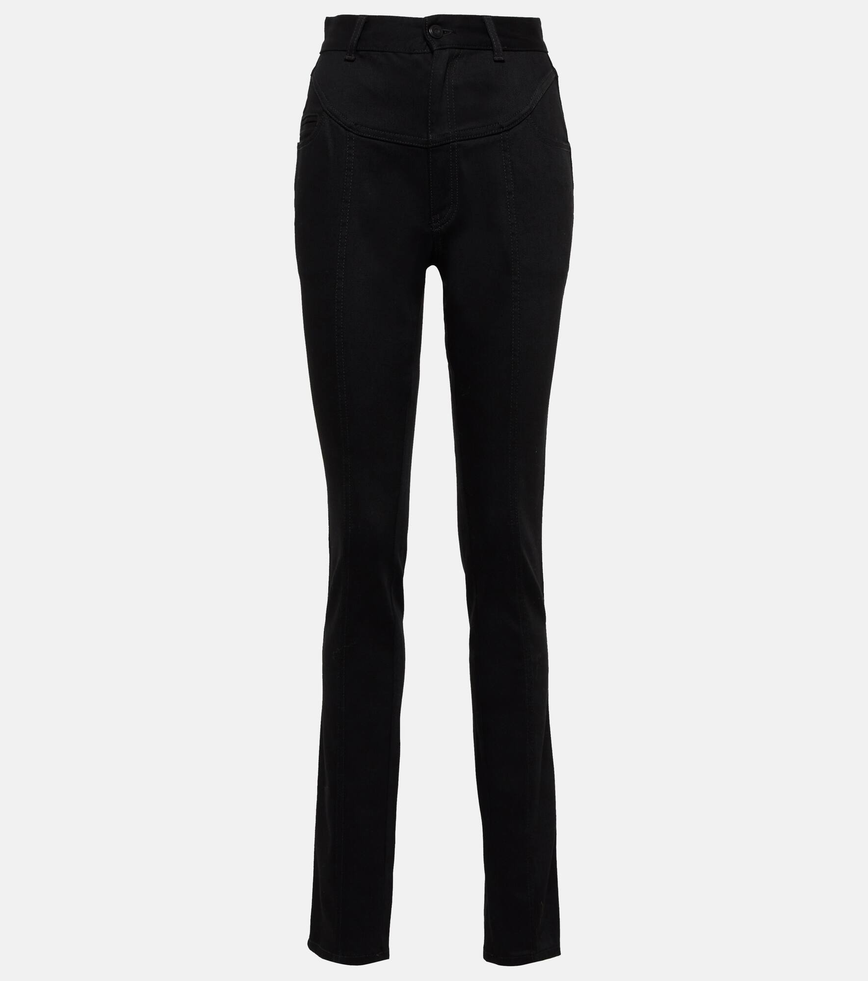 These jeans from Alaïa are an elevated wardrobe essential. Made from cotton, they are cut to a high-rise waist and feature topstitching details along the center of the slim legs. - material: 99% cotton, 1% polyurethane - lining: partially lined - pocket lining: 100% cotton - care instructions: machine wash at 30 degrees - five pockets - zipper fly, button fastening - Made in Italy - belt loops - Designer colour name: Noir Alaia - Runs small, please see Size & Fit tab