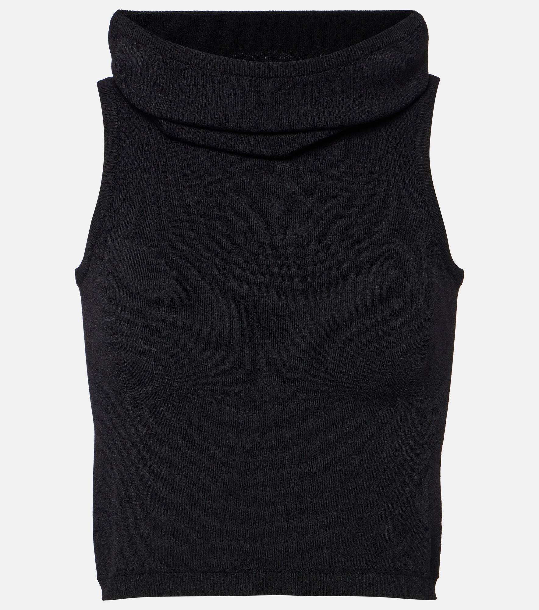 Product Details - Material: 83% viscose, 17% polyester - Cuff: ribbed - Care instructions: specialist clean - Made in Italy - Designer color name: Noir Alaia - Material II: 75% viscose, 15% polyester, 8% polyamide, 2% elastane - Hem: ribbed - Item number: P00948282 Size & Fit - True to size - Fitted - Stretchy fabric - Cropped - The model seen in the picture is 178cm-5'10" and wearing a size FR 36