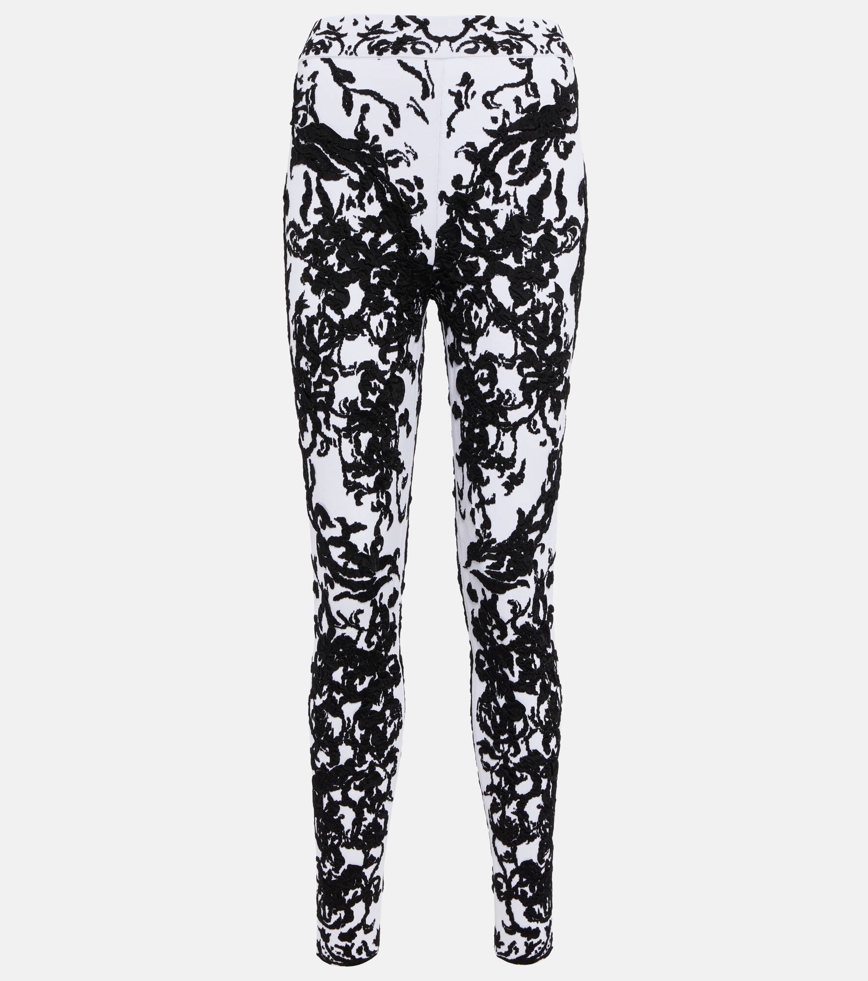 These Alaïa leggings feature textured jacquard patterning inspired by oriental ceramics. Made in Italy from stretchy jersey, they’re shaped with a high-rise waistband. Product Details - Material: 2% polyurethane, 59% viscose, 12% polyester, 4% elastane, 23% polyamide - Care instructions: specialist clean - Made in Italy - Designer color name: Blanc/Noir - Item number: P00746490 Size & Fit - True to size - Elasticated waist - Mid-weight material - Stretchy fabric - Skinny leg - The model seen in the picture is 178cm-5'10" and wearing a size FR 36