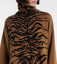 Upholding the legacy of Azzedine Alaia, the maison’s collections achieve an artful balance between sculptural and wearable. This sweater is designed with a warm turtleneck and boasts a tiger jacquard motif. Product Details - Material: 38% mohair, 33% polyamide, 26% viscose, 3% wool - Care instructions: dry clean - Made in Italy - Color: brown - Designer color name: Ocre - Item color: brown, black - Material II: 44% mohair, 35% polyamide, 17% viscose, 4% wool - Collar: turtleneck - Side slits - Item number: P01112303 Size & Fit - True to size - Dropped shoulders - Designed for a loose fit - Falls below the hip - The model seen in the picture is 178cm-5'10" and wearing a size FR 34