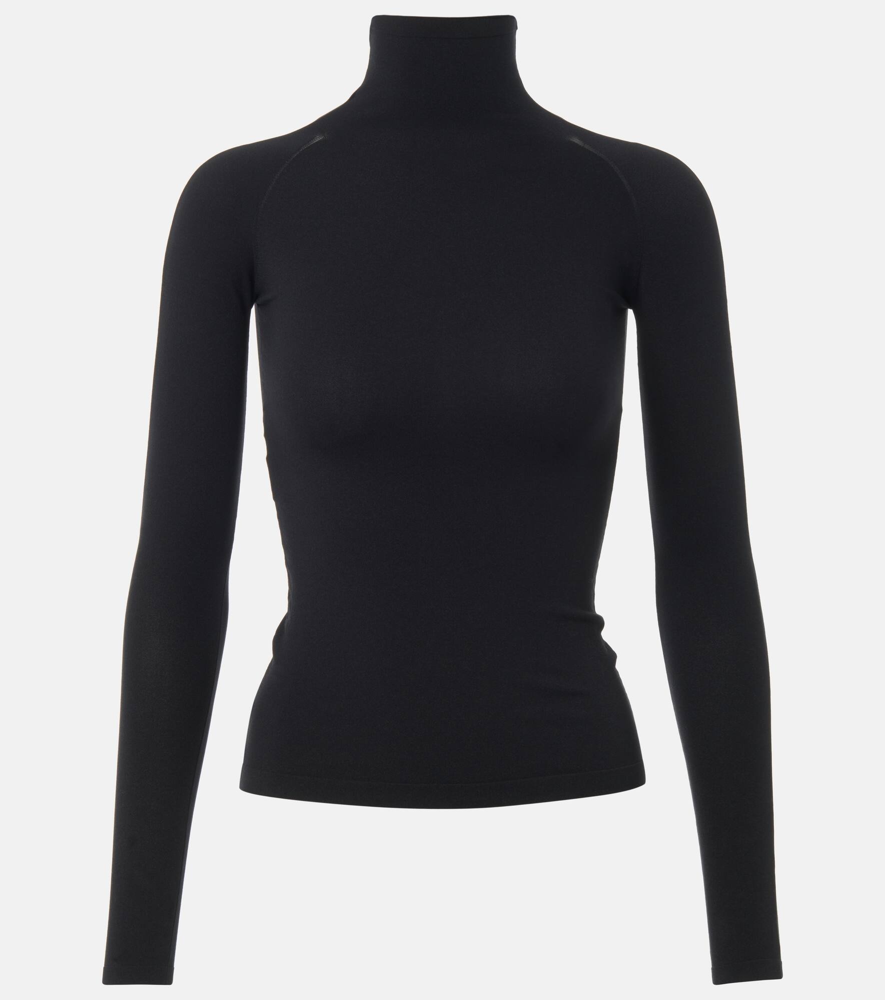 Honoring Azzedine Alaia’s legacy, the maison’s sculptural yet wearable collections hold an artful balance that only the most skilled designers can achieve. Made in Italy from jersey, this top has a fitted silhouette. Product Details - Material: 75% polyamide, 25% elastane - Care instructions: dry clean - Made in Italy - Designer color name: Noir Alaia - Item number: P01018677 Size & Fit - True to size - Fitted - Stretchy fabric - Falls to the hip - The model seen in the picture is 178cm-5'10" and wearing a size FR 36