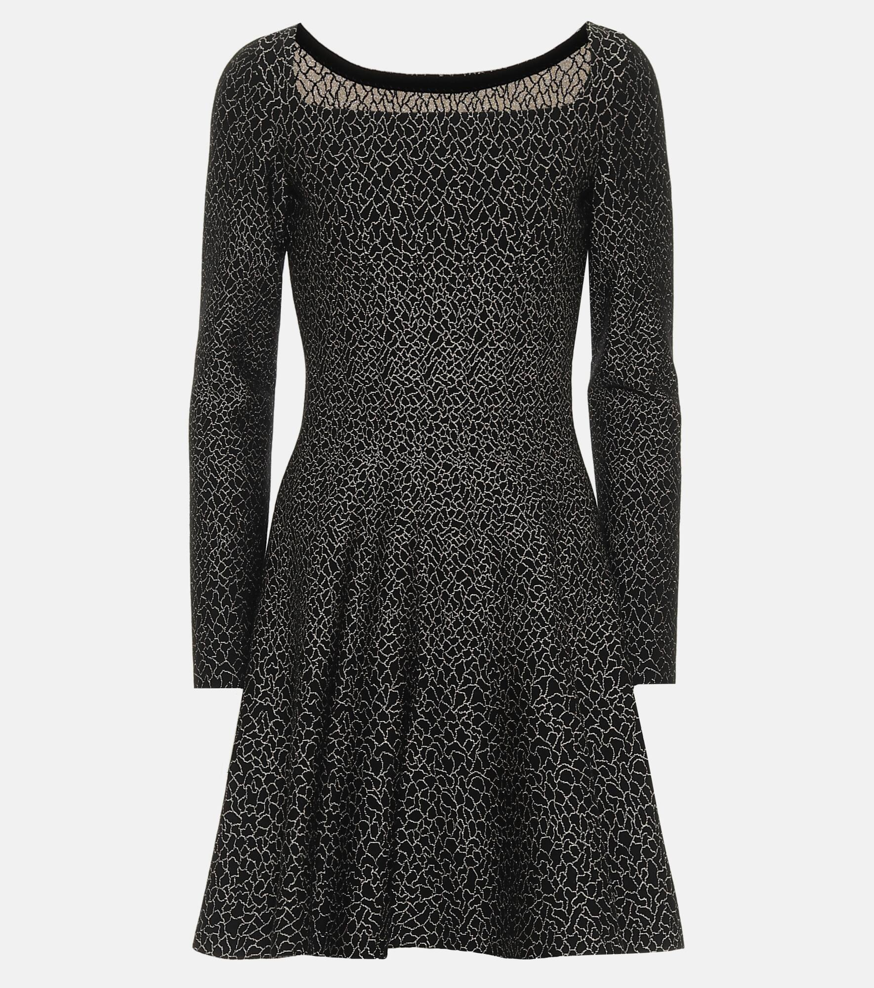 This is your golden reminder that there's room for yet another Alaïa minidress in your edit. Made from an elevated blend of wool and metallic fibers, the end result is an eye-catching lattice-like pattern. Designed in a fit-and-flare silhouette with a square neckline, the label's Bombe sandals with metallic embellishments are the perfect finishing touch. Product Details - Made in Italy - Closure: zipped side - Material: 13% polyester, 2% elastane, 6% polyamide, 9% metallic fibres, 34% wool, 36% viscose - Designer color name: Noir/Or - Care instructions: dry clean - Item number: P00495498 Size & Fit - Fits small to size - we recommend trying one size larger - Fitted bodice, loose skirt - Mid-weight material - Stretchy fabric - The model seen in the picture is 178cm-5'10" and wearing a size FR 38