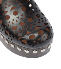 Alaïa champions the revival of '70s shoe styles with these leather clogs. The uppers are laser-cut with the instantly recognizable Vienne motif while the wooden soles are adorned with round, silver-toned studs. Product Details - Sole: leather insole, rubber sole - Toe shape: round toe - Upper: calf leather - Lining: calf leather - Comes with dust bags - Designer color name: Noir - Comes with a box - Made in Italy - Item number: P00698525 Size & Fit - Fits large to size - we recommend trying one size smaller - Slightly wide at the back - European sizes - 6cm-2.5" heel (size EU 38) - 3,5cm-1.5" platform (size EU 38)