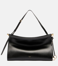 The Curve East West from Alaia is a timeless staple to always carry by your side. Crafted from supple leather, this Large iteration of the shoulder bag is roomy and compact at the same time, offering ample space for your essentials and beyond. Product Details - Material: leather - Lining: leather - Made in Italy - Designer color name: Noir - Item color: black - Closure: magnetic fastening - Hardware color: gold - Top handle - Item number: P01016769 Size & Fit - Height 25cm-10" - Width 41,5cm-16.5" - Depth 16cm-6.5" - Length of handles 59cm-23"