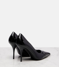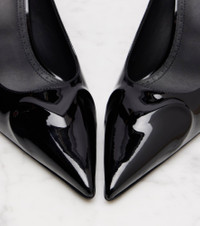 Make a bold statement in Le Cœur 3D pumps by Alaia. Italian-made from black patent leather, this sophisticated pair features sharp pointed toes and 90mm stiletto heels, adorned with the signature 3D heart motif. Product Details - Upper: calf leather - Lining: leather - Sole: leather insole, leather and rubber sole - Toe shape: pointed toe - Made in Italy - Includes: shoe box, dust bags - Designer color name: Noir - Item color: black - Item number: P01045846 Size & Fit - True to size - Best fit for narrow feet - European sizes - 9cm-3.5" heel (size EU 38)