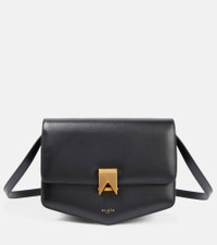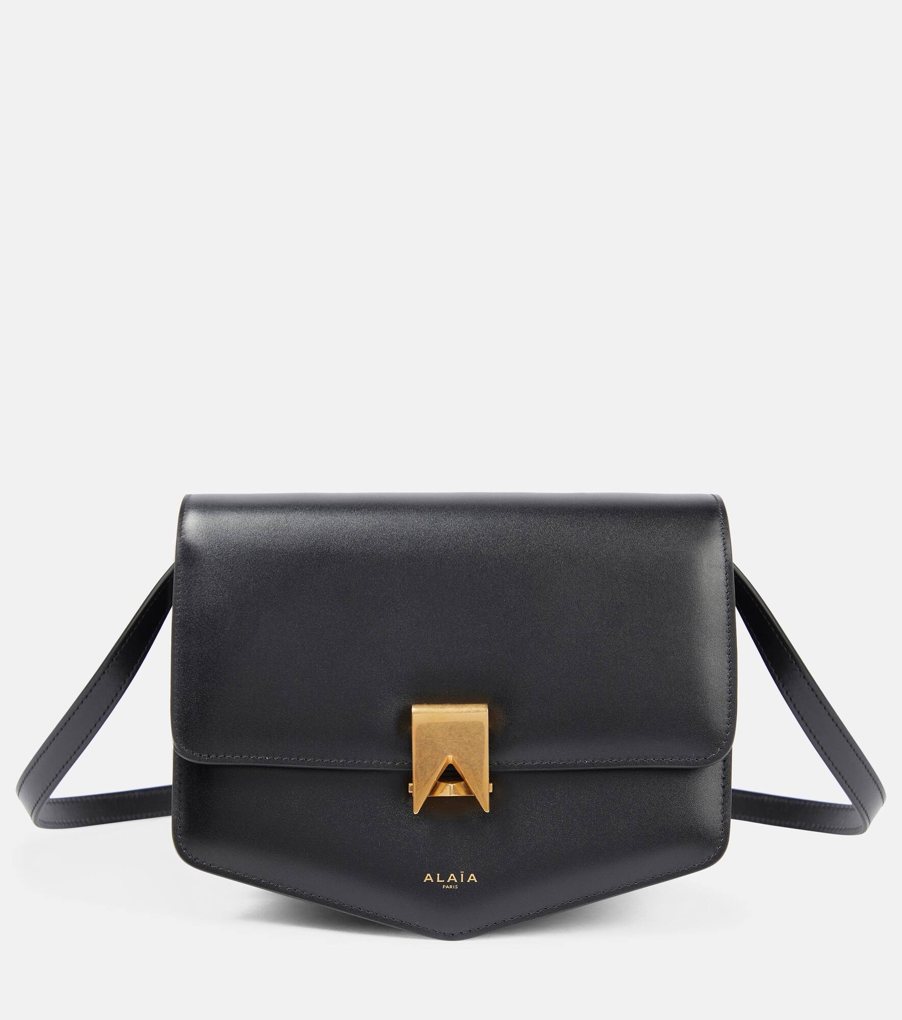 This timeless crossbody bag from Alaïa is crafted from smooth black leather, features accordion-style inner pockets and is and topped with golden hardware. Product Details - Internal details: internal slot pocket, leather lining, three internal compartments - Color of fastening: antique gold - Designer color name: Noir - Made in Italy - Comes with dust bag - Closure: snap-clasp fastening - Detachable, adjustable shoulder strap - Material: calf leather - Item number: P00688204 Size & Fit - Width 17cm-6.5" - Max. height 13,5cm-5.5" - Max. depth 10cm-4" - Min. length shoulder strap 100cm-39.5" - Max. length shoulder strap 106cm-41.5"