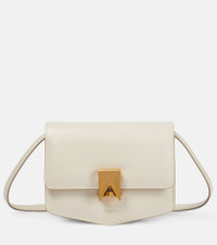 This timeless crossbody bag from Alaïa is crafted from smooth white leather, features accordion-style inner pockets and is and topped with golden hardware. Product Details - Back pocket - Material: calf leather - Internal details: internal slot pocket, leather lining, three internal compartments - Designer color name: Ivoire - Color of fastening: antique gold - Made in Italy - Closure: snap-clasp fastening - Comes with dust bag - Detachable, adjustable shoulder strap - Item number: P00688203 Size & Fit - Width 17cm-6.5" - Max. height 13,5cm-5.5" - Max. depth 10cm-4" - Min. length shoulder strap 100cm-39.5" - Max. length shoulder strap 106cm-41.5"