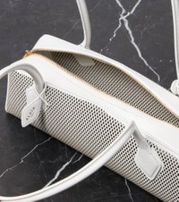 Product Details - Material: leather - Lining: leather - Made in Italy - Designer color name: Blanc Optique - Item color: white - Shoulder straps - Closure: two-way zipped top - Hardware color: gold - Color of fastening: gold - Includes: dust bag - Item number: P01016794 Size & Fit - Height 11cm-4.5" - Max. width 32cm-12.5" - Max. depth 10cm-4" - Length of handles 61cm-24"