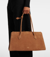 Le Teckel suede tote bag Product Details - Material: leather - Lining: leather - Made in Italy - Designer color name: Terre D'Ombre - Includes: dust bag - Closure: zipped top, magnetic fastening - Internal details: two internal compartments, internal slot pocket - Top handles - Hardware color: gold - Item number: P00992849 Size & Fit - Height 22cm-8.5" - Max. width 42cm-16.5" - Max. depth 18,5cm-7.5" - Length of handles 68cm-27"