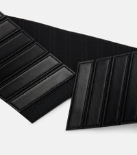 Sophistication and masterful construction define Alaia's creations, including this wide belt. The style is built with panels of supple leather and features an elasticated design. Product Details - Material: leather - Lining: leather - Made in Italy - Color: black - Designer color name: Noir - Closure: VELCRO® fastening - Includes: dust bag, box - Item number: P01115366 Size & Fit - Width 10cm-4" - Elasticated band