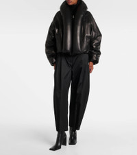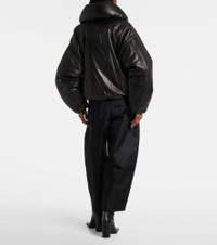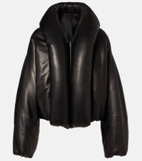 Honoring Azzedine Alaia’s legacy, the maison’s sculptural yet wearable collections hold an artful balance that only the most skilled designers can achieve. This bomber jacket is crafted from leather and boasts a padded silhouette with a zipped front. Product Details - Material: 100% lamb leather - Care instructions: specialist clean - Made in Italy - Designer color name: Noir Alaia - Item color: black - Hardware color: silver - Lining: 100% cupro - Pocket lining: 100% cotton - Filling: 100% polyester - Closure: zipped front - Pockets: side slit pockets - Elasticated waistband - Cuff: elasticated - Fully lined - Item number: P01085120 Size & Fit - True to size - Dropped shoulders - Designed for a loose fit - Non-stretchy fabric - Falls to the hip - The model seen in the picture is 178cm-5'10" and wearing a size FR 34