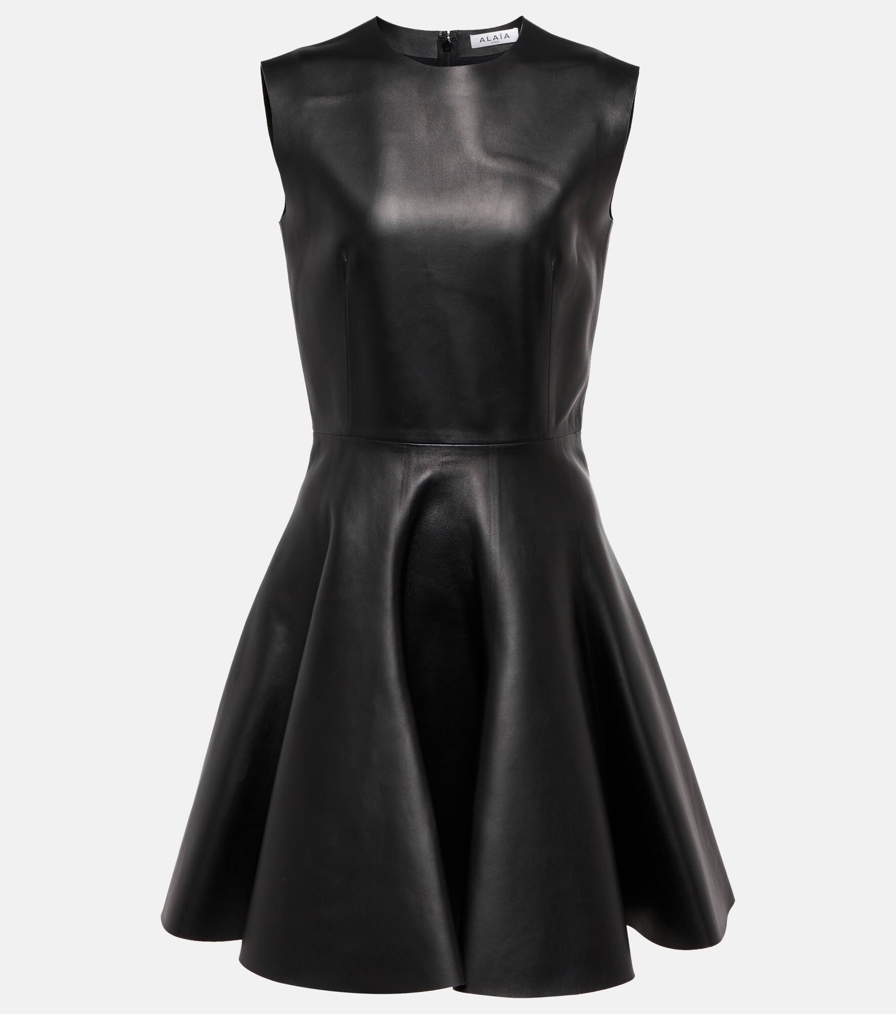 This minidress from Alaïa is expertly made in Italy from smooth leather to a stylish, boxy fit-and-flare silhouette. Product Details - Made in Italy - Material: 100% lamb leather - Closure: zipped back - Designer color name: Noir Alaia - Care instructions: specialist clean - Item number: P00700980 Size & Fit - True to size - Cinched waist - Mid-weight material - The model seen in the picture is 178cm-5'10" and wearing a size FR 36