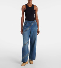 Leather-trimmed straw ballet flats