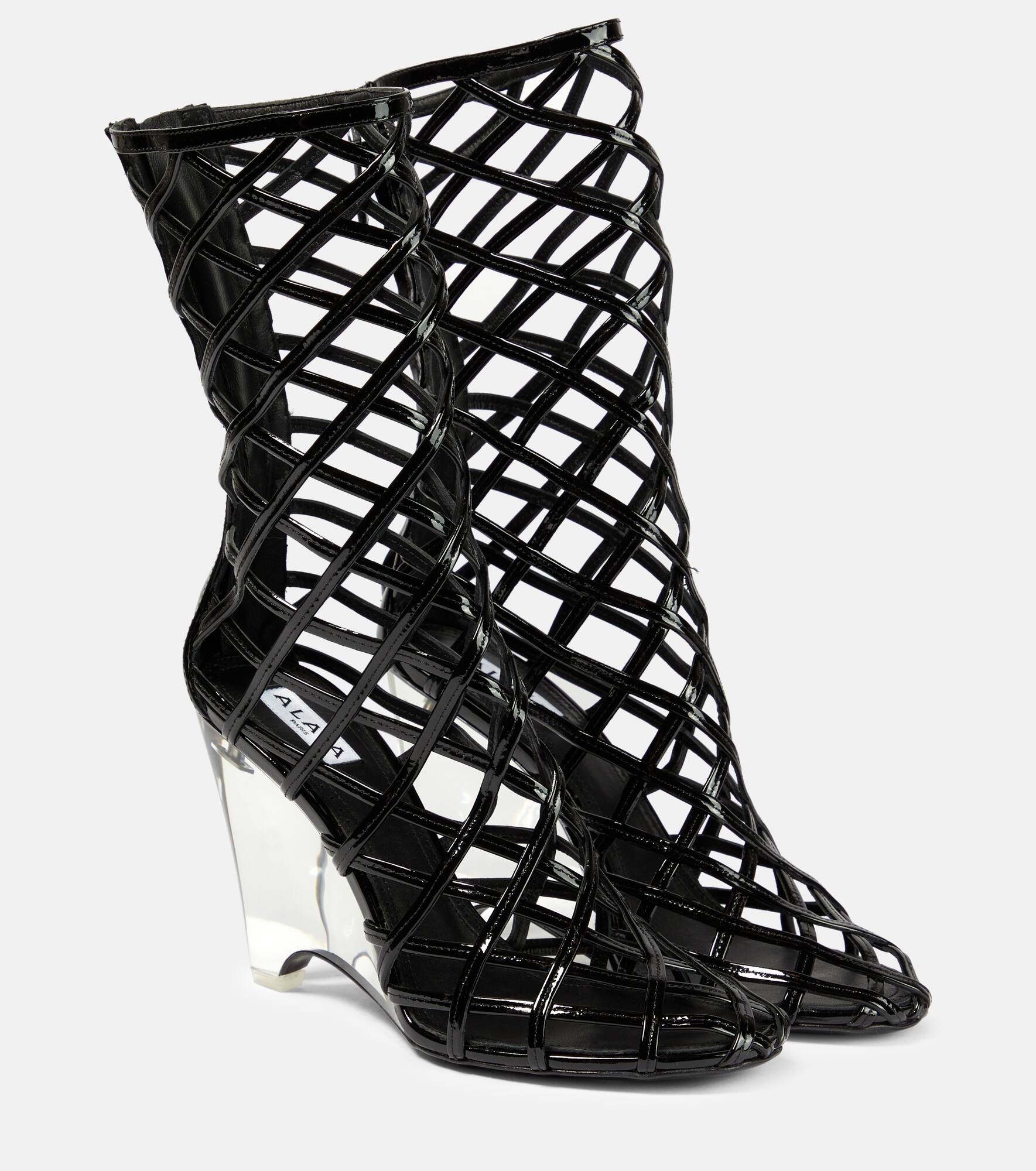 LA CAGE WEDGE BOOTIES IN PATENT LAMBSKIN