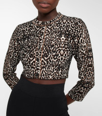 Cropped leopard jacquard-knit cardigan