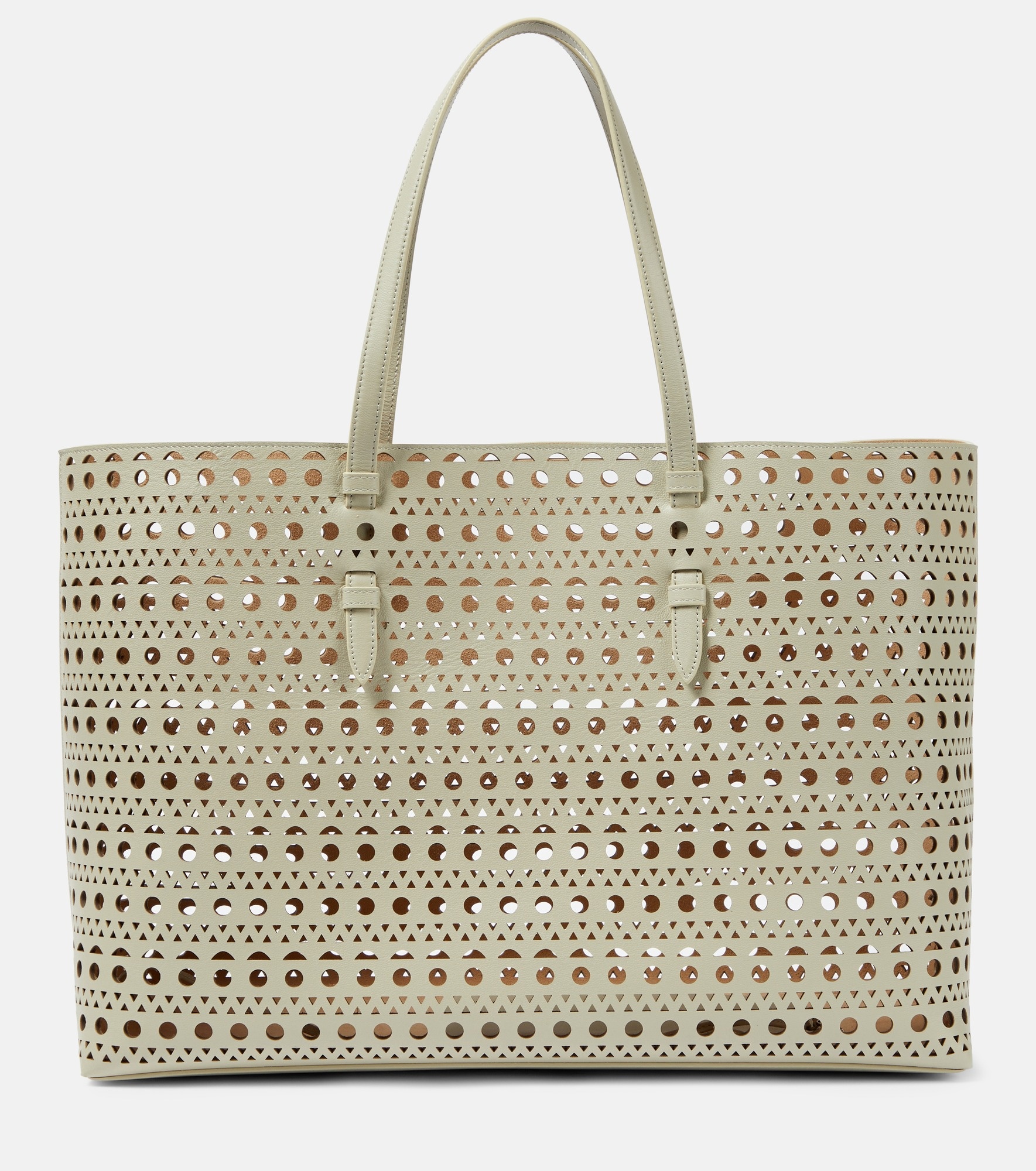Product Details - Material: leather - Lining: suede - Made in Italy - Designer color name: 055 - Argile - Closure: open top - Top handles - Detachable zipped pouch - Comes with dust bag - Item number: P00877162 Size & Fit - Height 32cm-12.5" - Max. width 50cm-19.5" - Max. depth 16cm-6.5" - Length of handles 51cm-20" - Clutch height 11,5cm-4.5" - Clutch width 20cm-8"