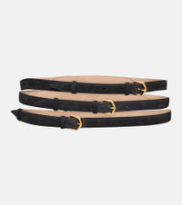 Look to Alaïa for luxurious yet edgy finishes on wardrobe staples, such as this multi belt. The leather design is crafted in Italy and features three slim, waist-hugging panels that elongate and cinch the torso. Product Details - Closure: buckle fastening - Material: leather - Comes with a box - Made in Italy - Item number: P00752475 Size & Fit - Buckle width 3cm-1" - Min. width 11cm-4.5" - Max. width 2cm-1"