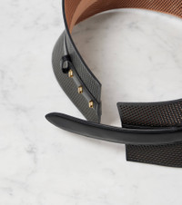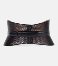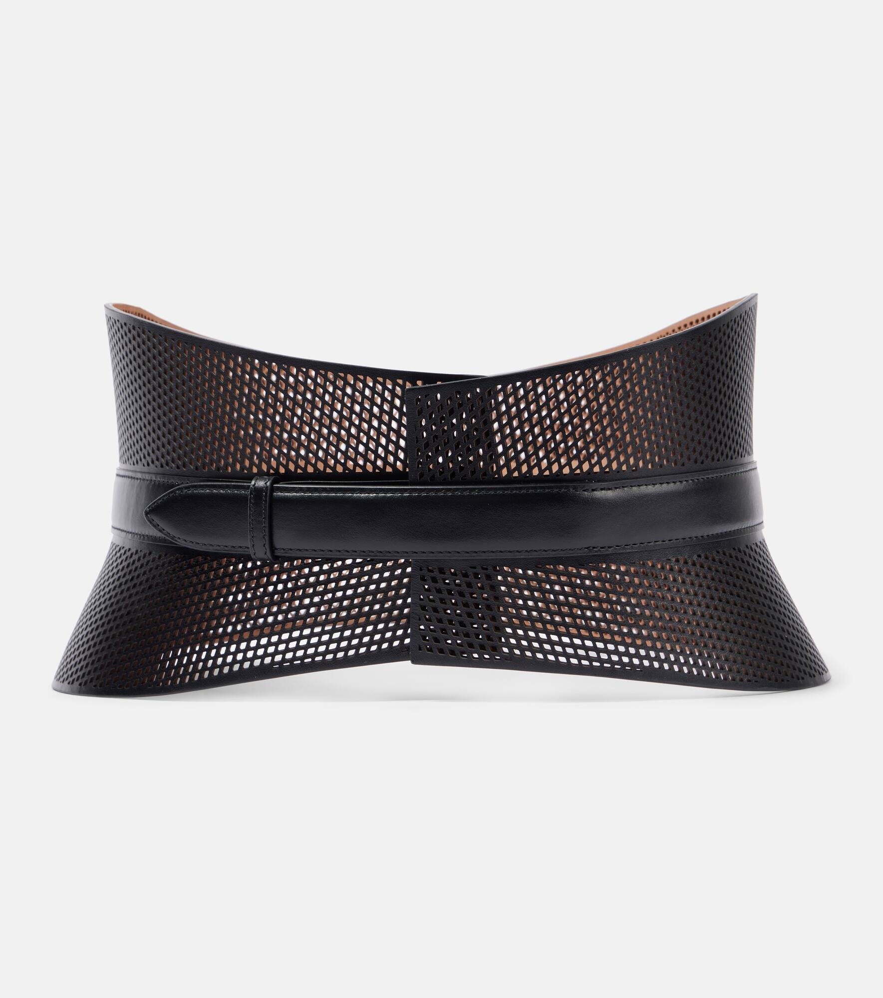 Honoring Azzedine Alaia’s legacy, the maison’s sculptural yet wearable collections always achieve an artful balance. The Neo Bustier leather belt has a mesh design and is an excellent way to add structure to your looks. Product Details - Material: 100% leather - Care instructions: do not wash - Made in Italy - Designer color name: Noir - Includes: box, dust bag - Item number: P01016775 Size & Fit - Max. width 15,5cm-6"