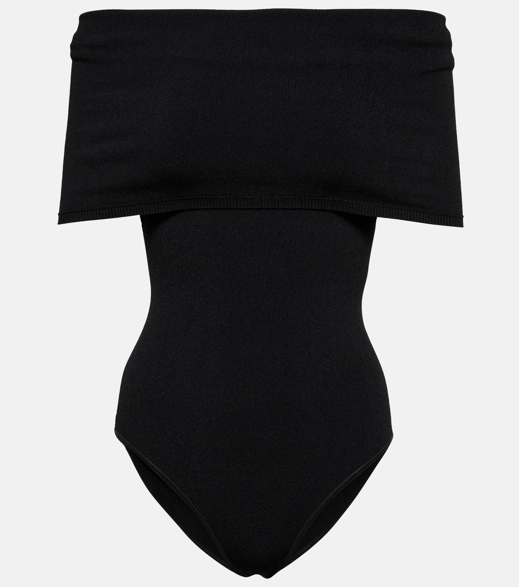 Alaïa's knitted bodysuit belongs in every woman's wardrobe. Made from the label's signature compact knit that sculpts the figure, the black style has an off-shoulder neckline and capelet panel that extends to the elbows. Product Details - Material: 83% viscose, 17% polyester - Care instructions: dry clean - Made in Italy - Designer color name: Noir Alaia - Closure: snap-buttoned fastenings - Item number: P00699707 Size & Fit - True to size - Off-the-shoulder - Fitted - Slightly stretchy fabric - Medium-cut leg - The model seen in the picture is 178cm-5'10" and wearing a size FR 36