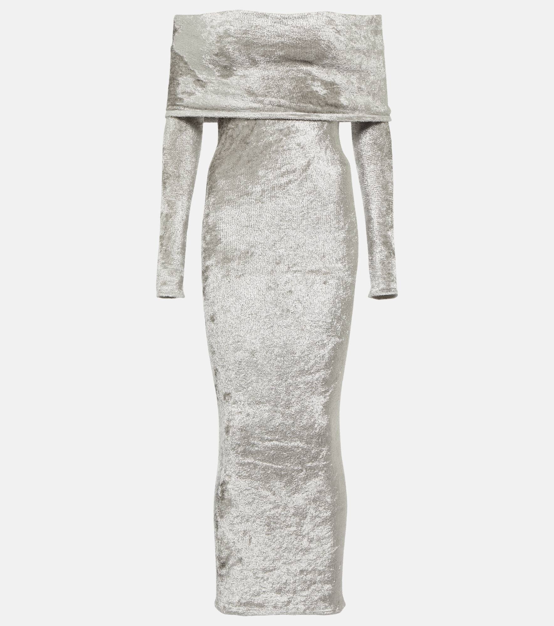 Off-shoulder velvet midi dress