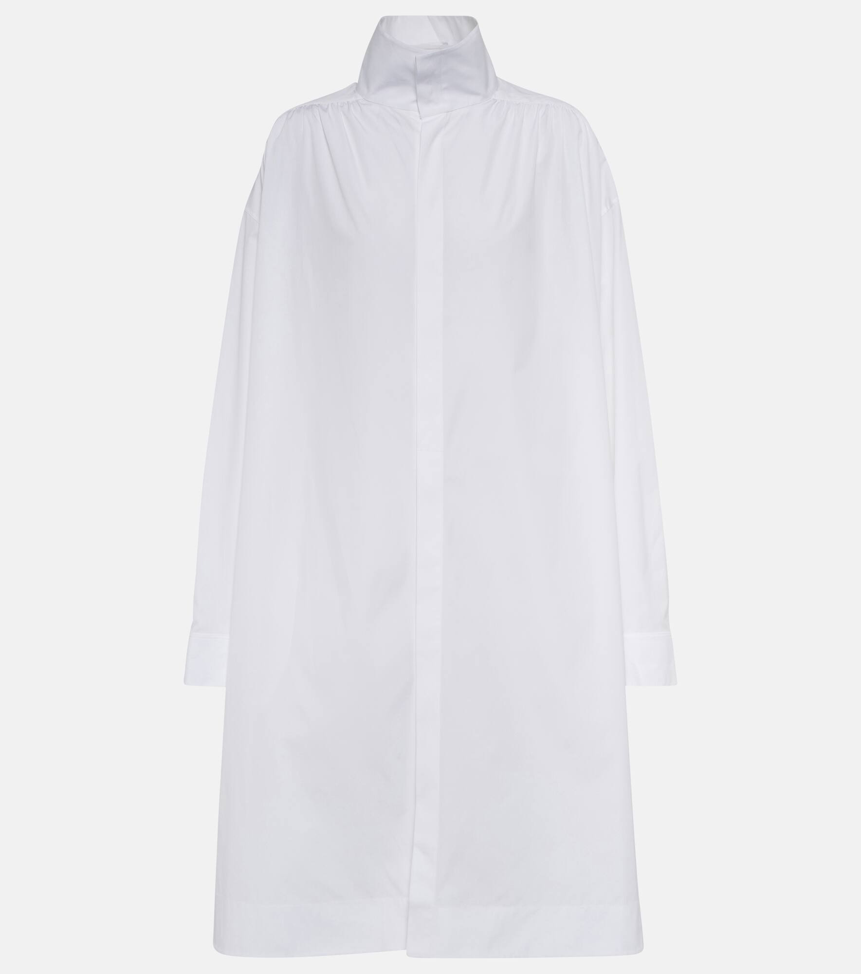 This cotton shirt from Alaïa showcases the brand's dedication to craftsmanship. Cut from cotton to an oversize silhouette, it features a high collar and pleats along the shoulders. Product Details - Made in Italy - Closure: concealed buttoned front - Care instructions: machine wash at 30 degrees - Designer color name: Blanc - Buttoned cuffs - Pockets: side slit pockets - Material: 100% cotton - Item number: P00634167 Size & Fit - Fits large to size - we recommend trying two sizes smaller - Designed for an extremely oversized fit - Dropped shoulders - Mid-weight material - Falls below the hip - The model seen in the picture is 178cm-5'10" and wearing a size FR 36