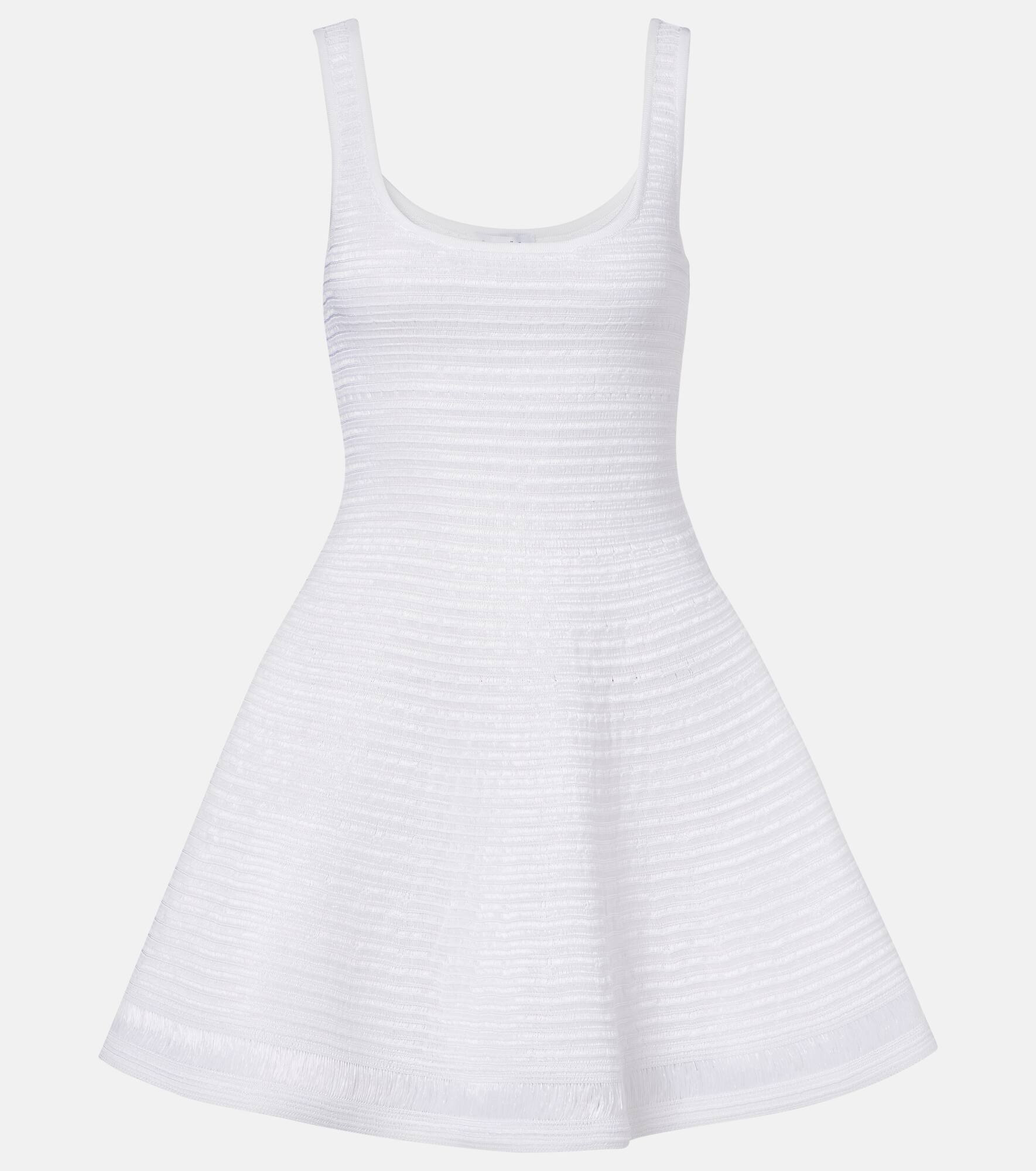A Parisian maison, Alaia is built on a distinctive vision and quality of craftsmanship. This peplum mini dress is crafted in Italy and features a scoop neckline, a flared hem, and an invisible zip-back closure. Product Details - Material: 100% viscose - Care instructions: specialist clean - Made in Italy - Designer color name: Blanc - Item color: white - Closure: invisible zipper - Item number: P01047452 Size & Fit - True to size - Cinched waist - Slightly stretchy fabric - The model seen in the picture is 178cm-5'10" and wearing a size FR 36