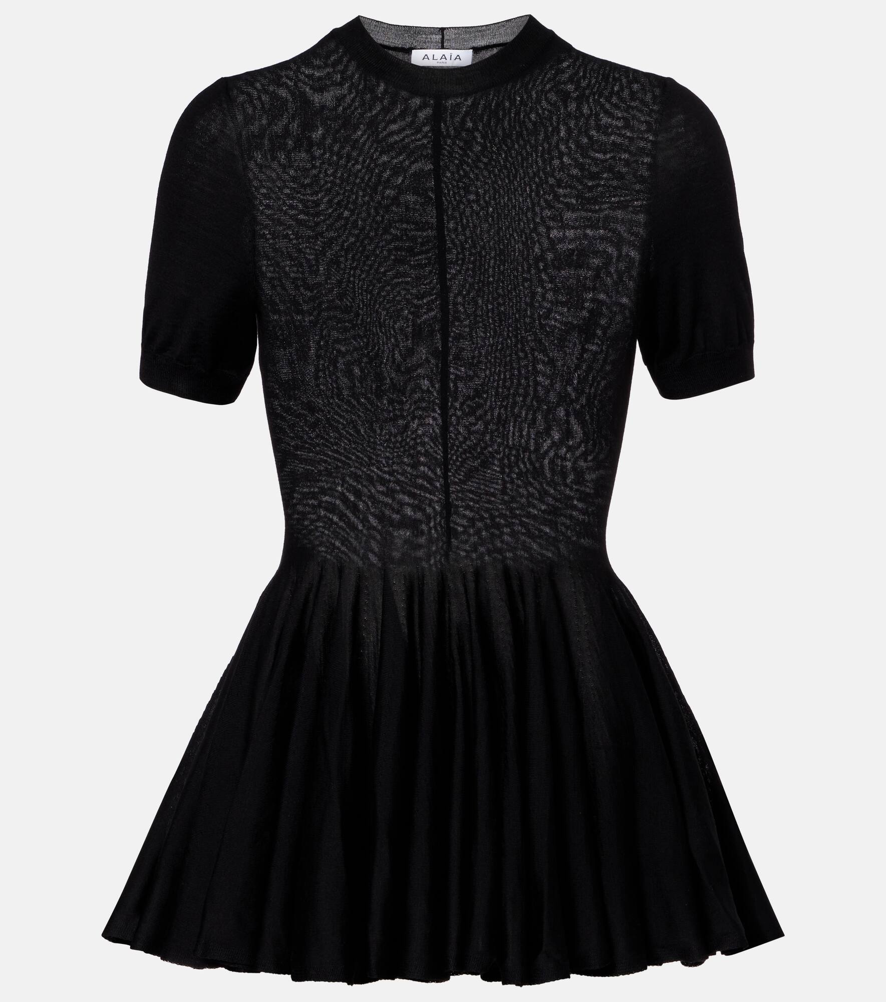 Alaia’s sculptural yet wearable collections hold an artful balance that only the most skilled designers can achieve. This top is crafted from virgin wool, and its peplum silhouette brings romantic charm to the look. Product Details - Material: 100% virgin wool - Care instructions: dry clean - Made in Italy - Designer color name: Noir Alaia - Item color: black - Trim: 75% wool, 23% polyamide, 2% polyurethane - Collar: crewneck - Item number: P01047437 Size & Fit - True to size - Cinched waist - Slightly stretchy fabric - Falls below the hip - The model seen in the picture is 178cm-5'10" and wearing a size FR 36