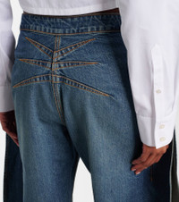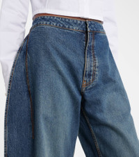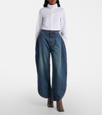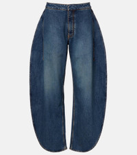 Honoring Azzedine Alaia’s legacy, the maison’s sculptural yet wearable collections hold an artful balance that only the most skilled designers can achieve. The Petal jeans are cut from classic blue denim with contrasting stitching to an exaggerated barrel-leg silhouette with a mid-rise waistline. Product Details - Material: 99% cotton, 1% polyurethane - Care instructions: machine wash at 30 degrees - Made in Italy - Designer color name: Bleu Delave - Item color: blue - Pocket lining: 65% polyester, 35% cotton - Closure: zip and hook fastening - Pockets: side slit pockets - Mid-rise - Item number: P01084952 Size & Fit - True to size - Non-stretchy fabric - Tapered leg - Mid-rise - The model seen in the picture is 178cm-5'10" and wearing a size FR 34