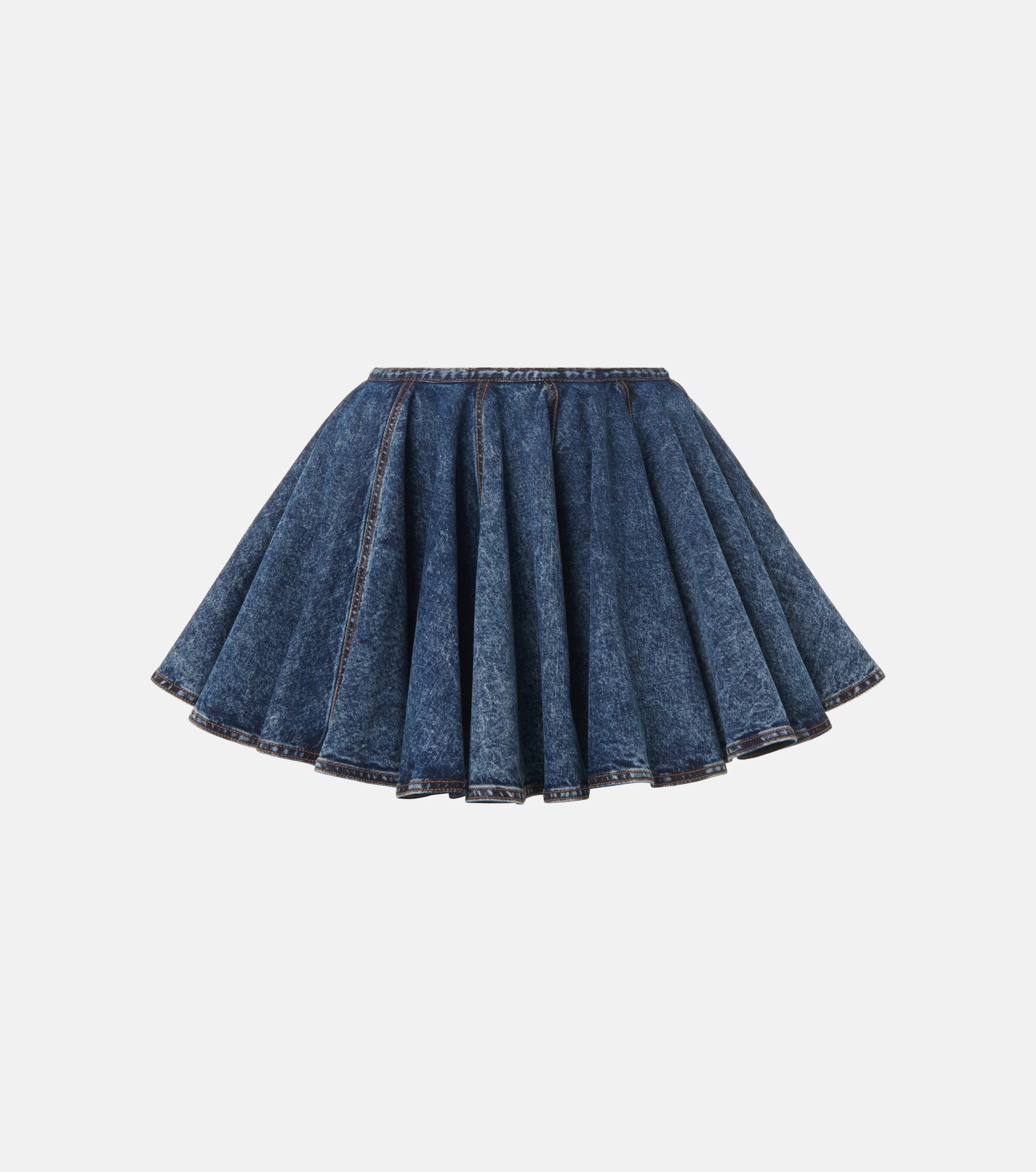 Honoring Azzedine Alaia’s legacy, the maison’s sculptural yet wearable collections hold an artful balance that only the most skilled designers can achieve. This miniskirt is a classic skater style made in Italy from denim. Product Details - Material: 99% cotton, 1% polyurethane - Care instructions: dry clean - Made in Italy - Designer color name: Bleu Neige - Closure: zip and hook fastening - Pockets: side slit pockets - Pocket lining: 65% polyester, 35% cotton - Item number: P01018186 Size & Fit - True to size - Non-stretchy fabric - Sits low on the hips - The model seen in the picture is 178cm-5'10" and wearing a size FR 36