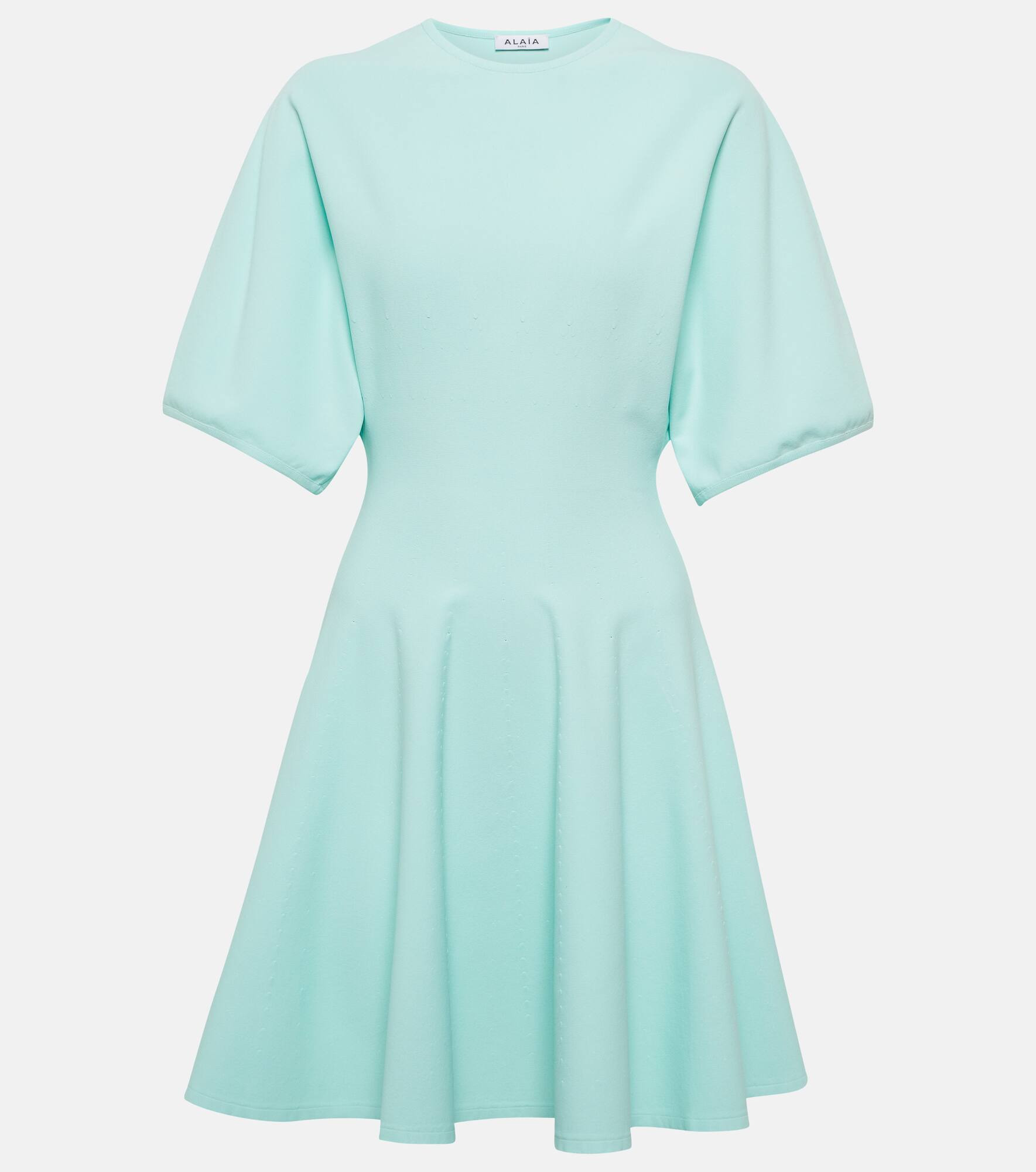 Opt for Alaïa's signature elegance in the form of this minidres. Made from lightweight jersey, it has a fit-and-flare silhouette with a pleated A-line skirt. Product Details - Material: 83% viscose, 17% polyester - Care instructions: dry clean - Made in Italy - Item number: P00634340 Size & Fit - True to size - For curvier figures, we recommend taking one size up - Cinched waist - Mid-weight material - The model seen in the picture is 178cm-5'10" and wearing a size FR 36