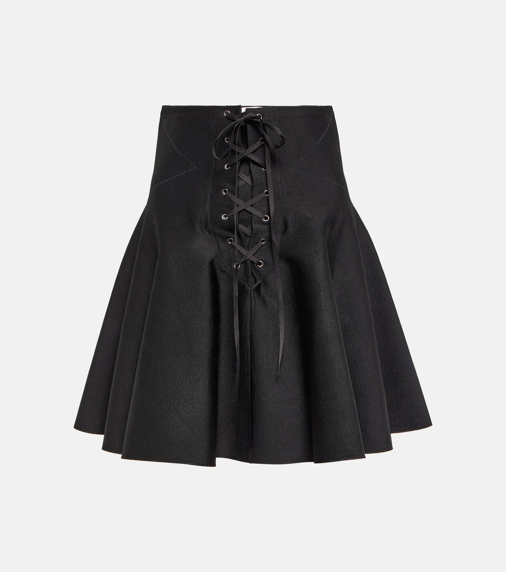 Lace-up knitted mini skirt