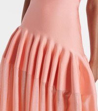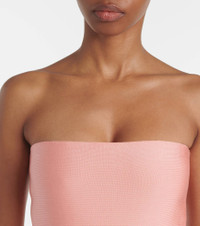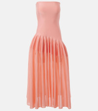 Honoring Azzedine Alaia’s legacy, the maison’s sculptural yet wearable collections hold an artful balance that only the most skilled designers can achieve. Made in Italy, this gown has a strapless neckline with gentle pleating at the skirt. Product Details - Material: 84% viscose, 15% polyamide, 1% polyurethane - Care instructions: dry clean - Made in Italy - Designer color name: Peche - Item number: P01018658 Size & Fit - True to size - Strapless - Relaxed fit from the hip down - Slightly stretchy fabric - The model seen in the picture is 178cm-5'10" and wearing a size FR 36